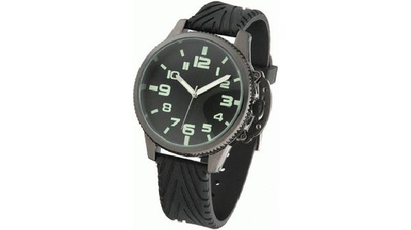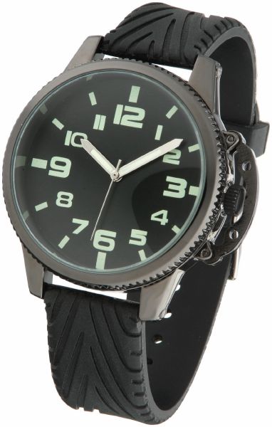 | Material : | Metal case with shiny chrome finish. 20 mm black silicon strap. |