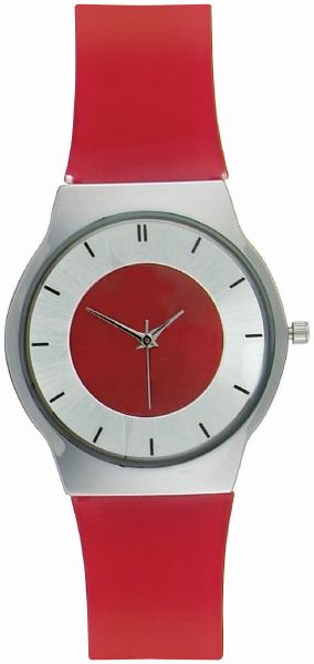 | Material : | Slim metal case with shiny chrome finish. Red PVC strap. |