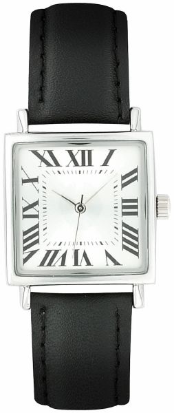 Salzburg Gents. Case dimension: 27mm x 27mm. Printing diameter: 8mm x 8mm. Alloy case with 18mm smooth leather strap, water resistant case. Supplied in a black suede pouch.