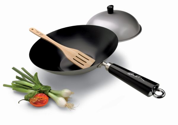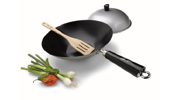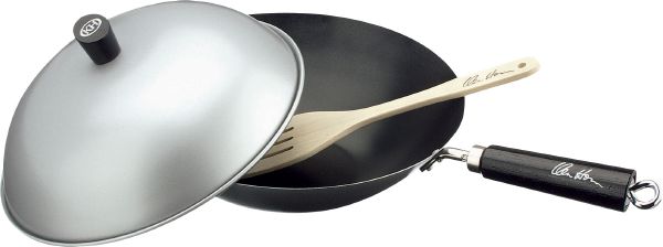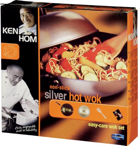 | Features : | Set includes: 31cm non-stick silver wok and lid, a wooden slotted turner, and a use and care instructions leaflet. Flat bottom - the wok sits steadily on any stove top or hob. Suitable for all hob types except induction. The Ken Hom Classic non-stick wok |