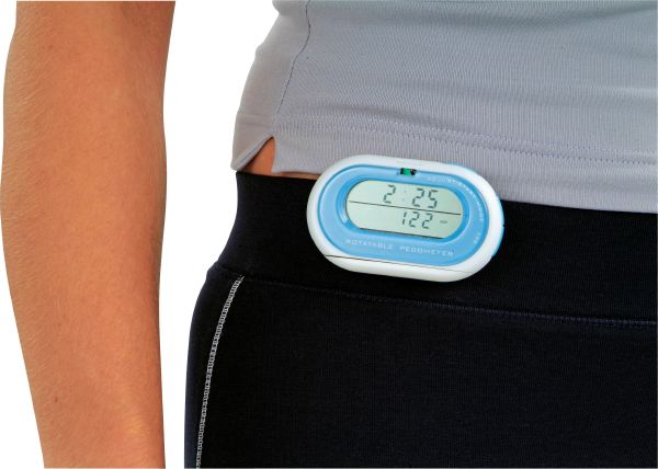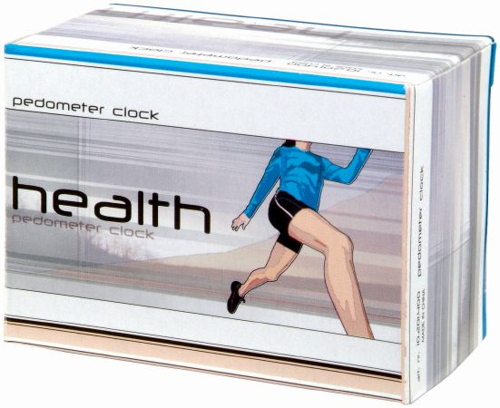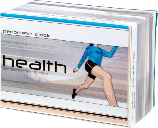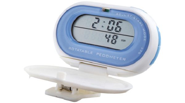 Pedometer. Features target distance, distance walked, time, target time, target calories burnt and final calories burnt. Rotatable clock, real time clock in 12/24 hour time format, daily alarm, metric system or imperial system formats.