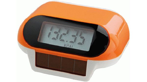 Solar Pedometer. Solar powered pedometer featuring steps, travelled distance and burnt calories in different formats.