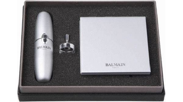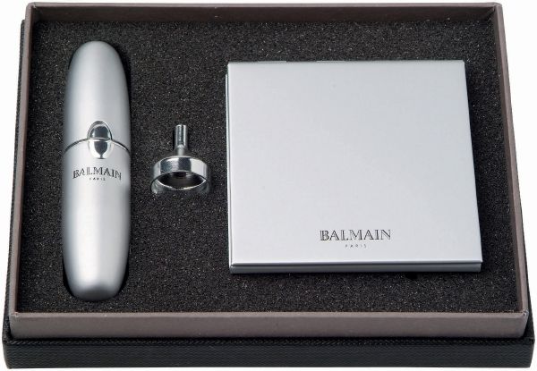 Balmain 3 Pcs Cosmetic Set. Double sided mirror with vaporiser and funnel.