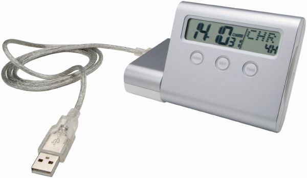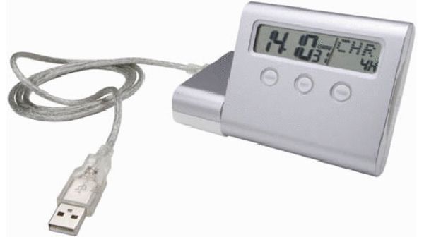 Clock With Hub. Alarm clock with 4 ports hub, 25 cities world timer and calendar function.