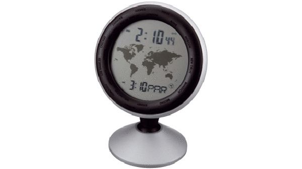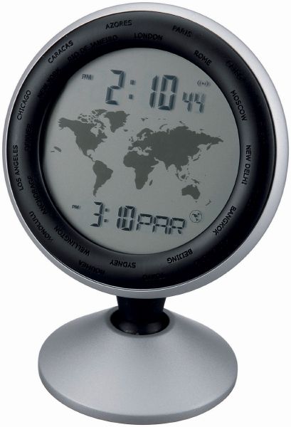 Round World Timer. World timer which features a world map, alarm clock, date, month, year and C/F temperature function.