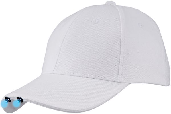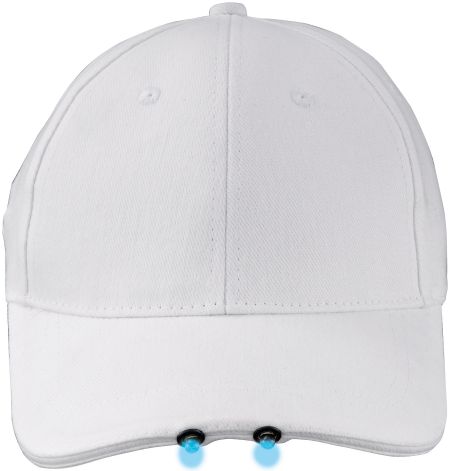 Light Cap. This patented cap has with it, two strong LED-lights mounted in its peak. The perfect aid for construction workers, electricians and anyone who is in need of extra light. Ideal for campers and nature-lovers or to be seen whilst e.g. riding a bike or jogging. The LED lights are turned on and off by a built-in switch on the inside of the cap. Heavy twill cotton.