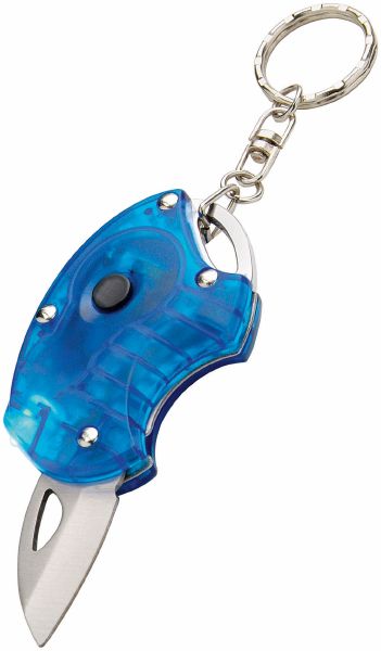 Multi Function Key Light. Key chain with torch and cutting knife with security lock.