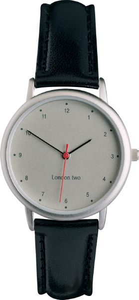 | Features : | Metal case with brushed chrome finish 14 mm black padded leather strap 937.494 Case dimension: 28,75mm Print area:21mm Print area:21mm |