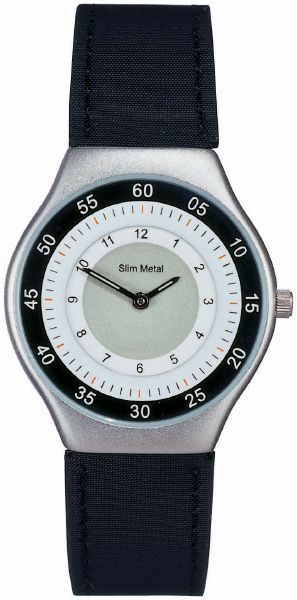 Slim Metal. 2 Hand movement. Case dimension :32.5 mm. Printing diameter : 16 mm. Slim metal case with brushed chrome finish. 16 mm black PU nylon strap.