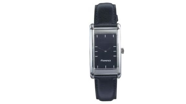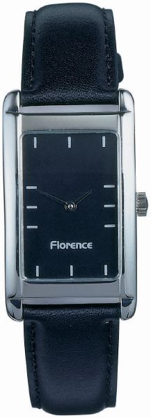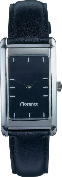 Florence Gents. Case dimension : 38 mm x 25 mm. Printing area : 25.5 mm x 16.25 mm. Metal case with shiny chrome finish. 18 mm black padded leather strap ref 19933484.