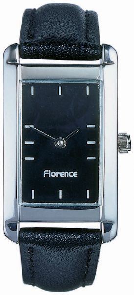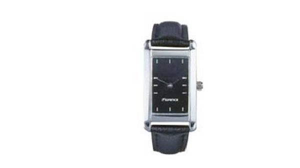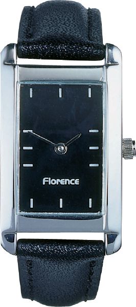 Florence Ladies. Case dimension: 34.3 mm x 20 mm. Printing area : 12 mm x 19 mm. Metal case with shiny chrome finish. 14 mm black padded leather strap.