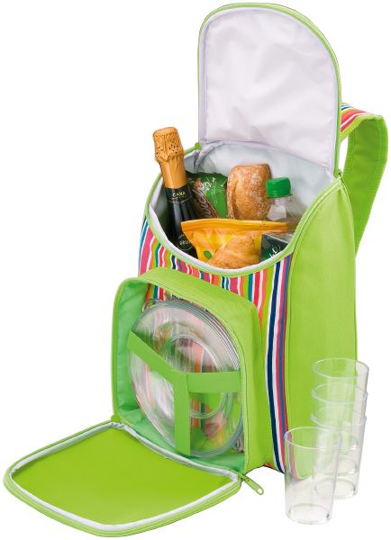 Summer Picnic Rucksack. All you need for a picnic in the park: cooler compartment and plates, cups and cutlery for 4 people. Take this Summer rucksack with you and enjoy your day out. 300D polyester.