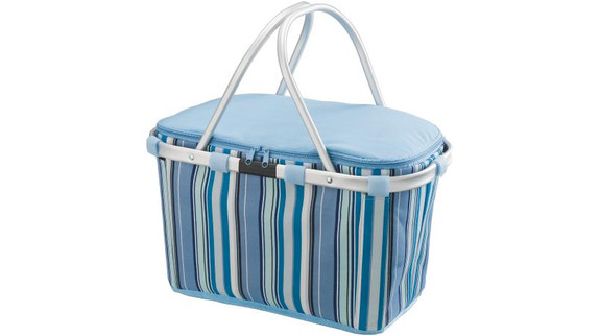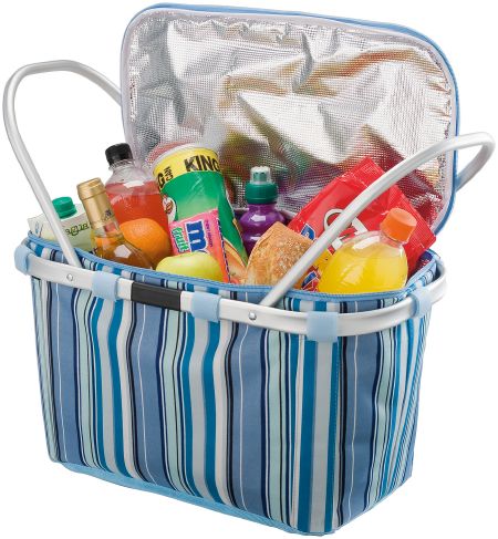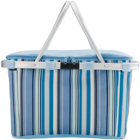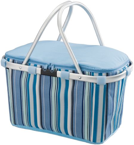 Riviera Cooler Basket. This Riviera basket keeps your food and drinks cool whilst shopping or whilst enjoying a day at the beach. After use you can easily store it away because of its compact size.