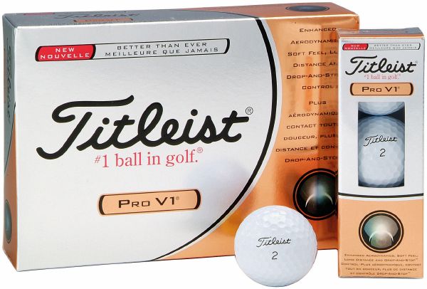 Titleist Pro V1. The Titleist Pro V1 golf ball provides improved launch conditions for longer distance while maintaining superior Drop-and-Stop™ performance. Packed in boxes of 3. But prices are shown per ball.